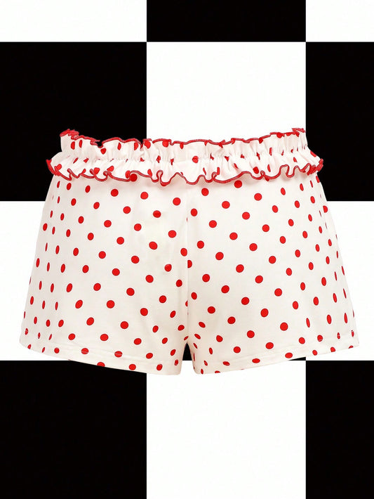 Y2Kool Maria Clara Maia Shorts de mujer con contraste blanco y rojo, lunares, volantes, estilo Y2K, femeninos, adecuados para verano, vacaciones, fiestas, uso casual y sexy