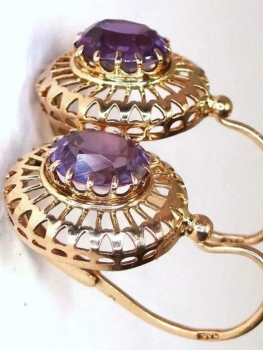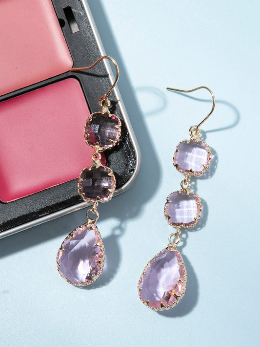 1 Par De Pendientes De Cristal Morado Vintage Con Incrustaciones De Piedra De Cz Y Color Dorado Para Mujeres, Pendientes Con Caída Para Bodas Y Regalos De Joyería Femenina
