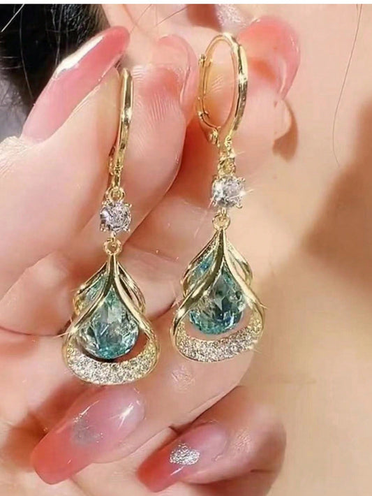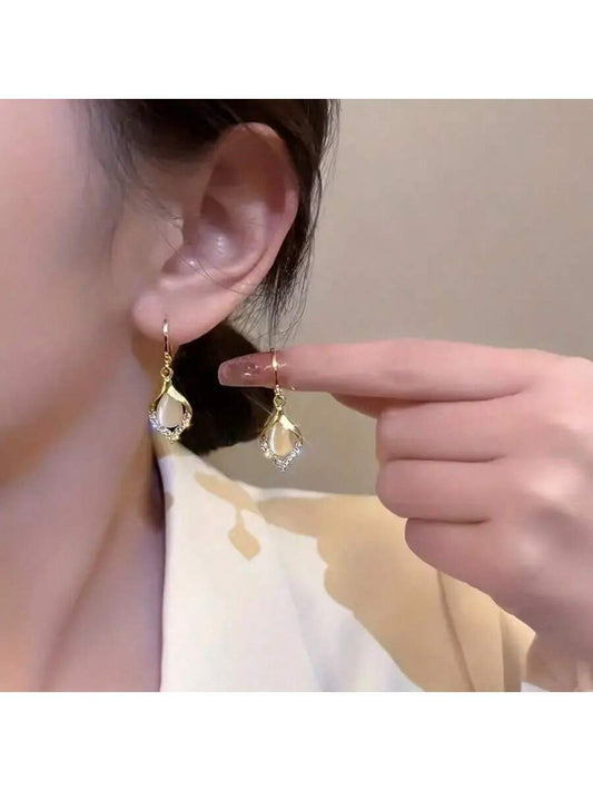 1 par de pendientes de moda clásicos europeos y americanos, pendientes de piedra de ojo de gato, pendientes largos con colgante de gota de diseño dulce