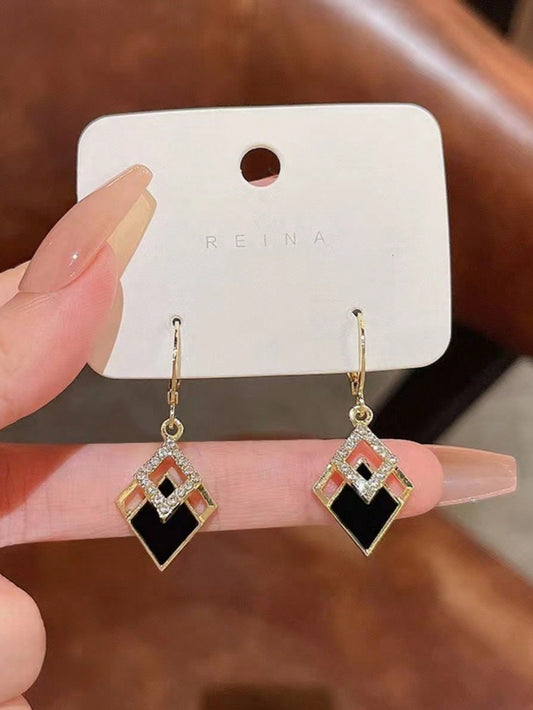 1 par de pendientes de clip elegantes con diseño rómbico, pendientes de moda y personalidad, aptos para el uso diario de las mujeres