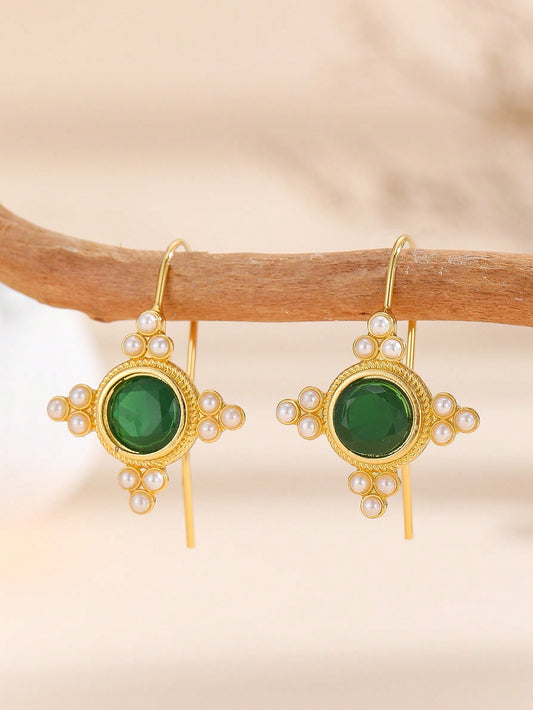 1 par de pendientes elegantes y lujosos de ágata verde ligeros para mujeres, regalo para citas, banquetes y fiestas