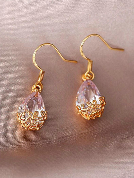 1 par de pendientes de mujer de cristal transparente con bisel metálico, ganchos para las orejas brillantes y lujosos, adecuados para uso diario, fiesta, noche, regalo