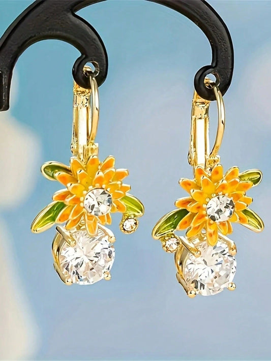 1 par de pendientes con colgante de cristal con diseño de girasol y gota de agua para mujeres