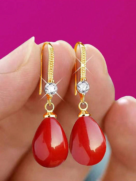 1 par delicado & brillante dorado cristal & rojo zirconia cúbica Pendientes , lujo regalo para mujeres , tener una cita con Decoración de fiestas