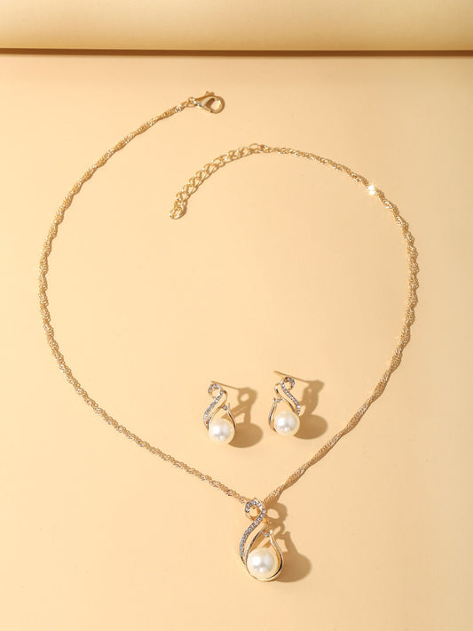 1 Pieza Encantador Collar Con Colgante Con Forma De Gota De Agua Con Rhinestone Y Perlas Falsas Y 1 Par De Aretes, Regalo De Cumpleaños/festival Para Mujeres