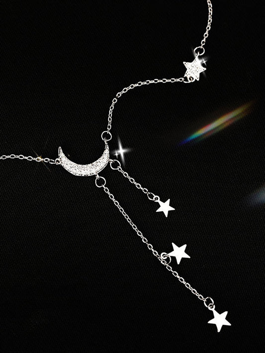 1 pieza exquisito brillante plata color con fleco con estrella luna Collar para mujeres clavícula con cadena Mujer Bisutería regalo de cumpleaños Accesorios