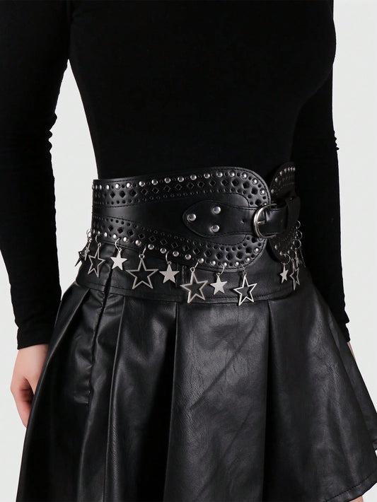ROMWE Goth 1 pieza Juego de cinturón de cintura y hebilla para pantalones con decoración de estrella y remaches, estilo gótico retro punk Y2K, para uso diario de mujeres, como regalo.