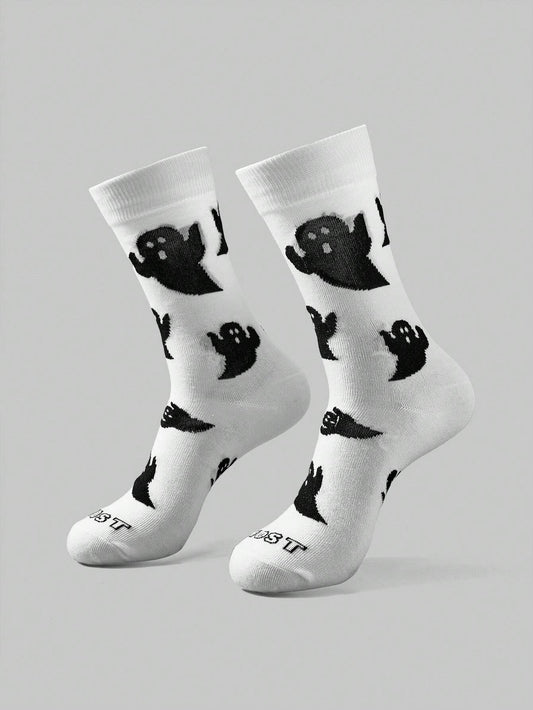 ROMWE Goth 2 pares Calcetines tipo tripulación con estampado de fantasmas para mujer, para todas las estaciones