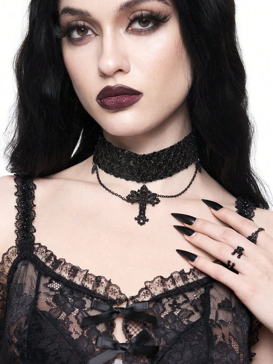 ROMWE Goth Collar de encaje con cruz punk creativo, accesorios Lolita góticos de nicho retro, collares de mujer, Halloween