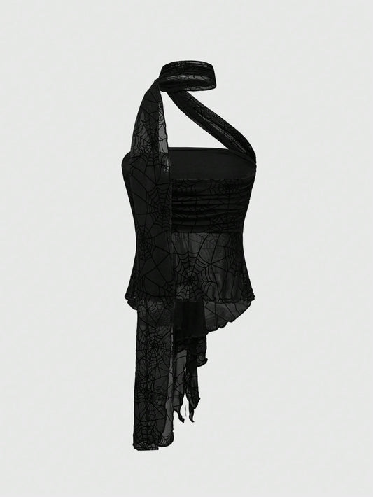 ROMWE Goth Parte superior corta desmontable con malla de tela de araña sexy para el ombligo, estilo Y2K para mujeres