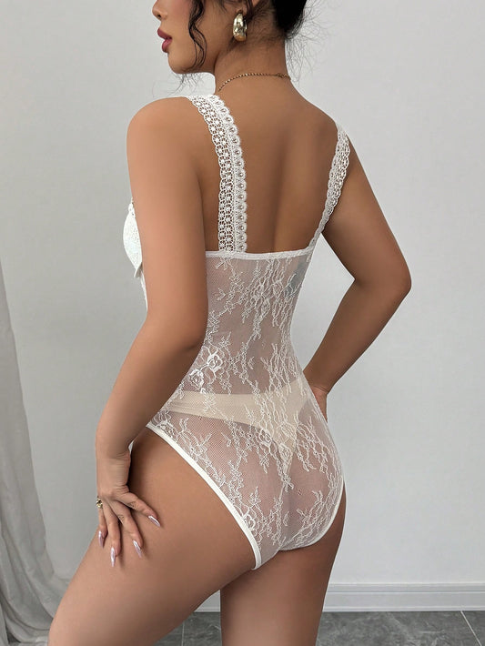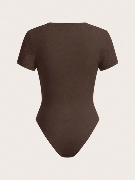 SHEIN SXY Mono de una pieza de unicolor con escote en V profundo y ajuste ceñido, apto para ropa interior o exterior, para citas, fiestas de soltera, uso casual, de compras, salir, citas, fácil de combinar y que adelgaza