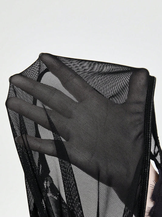 ROMWE Goth Mono sexy de estilo gótico con encaje de esqueleto