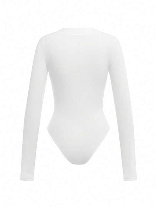 SHEIN PETITE Body de manga larga con botones en la parte delantera, de corte minimalista y ajustado para mujer
