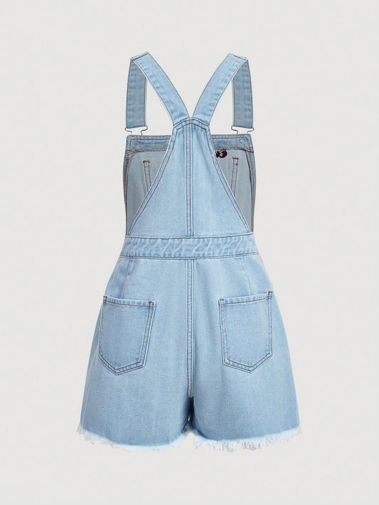 SHEIN MOD Pantalones cortos de mezclilla para mujeres con bordado de cerezas en el peto y bolsillo delantero