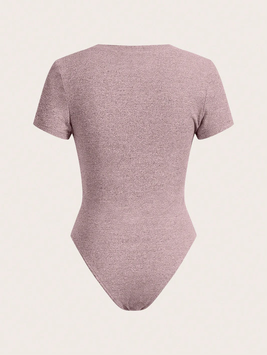 Slaydiva Body ajustado de manga corta con cuello en V profundo informal - Gris