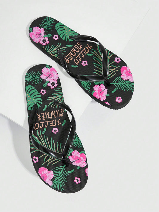 Zapatos de mujer ligeros con estampado de flores, sandalias de playa de moda negras para vacaciones de verano, zapatos de verano en oferta, zapatos de vuelta al colegio, zapatos de estudiante universitario, zapatos de Halloween