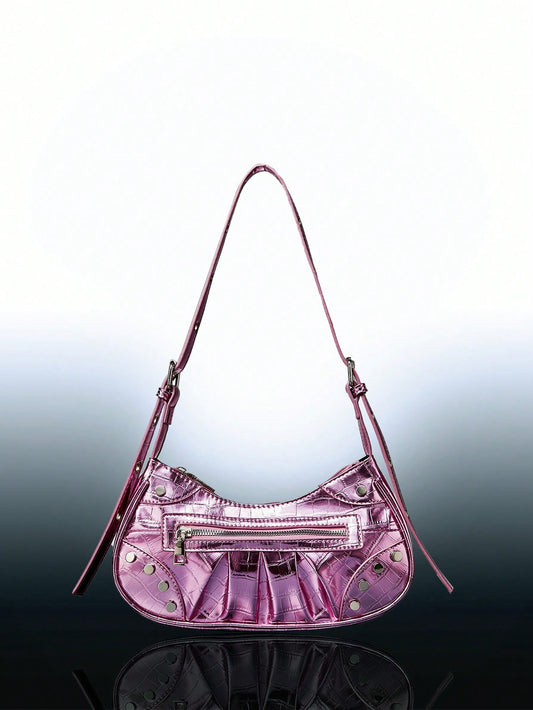 SHEIN ICON Bolso de hombro cruzado decorado con cremallera para mujer con estilo