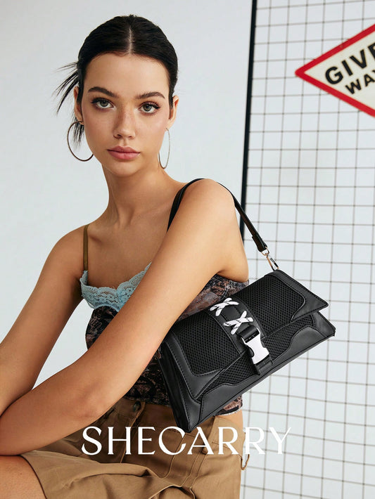 SHECARRY Bolsos de hombro para mujer, de malla, nailon, otoño/verano/invierno, universidad, escuela, vacaciones, estilo callejero, deportes, una noche, Y2K, futurista, punk, estilo motero, dulce, fresco, urbano, techwear, lazo, estudiante