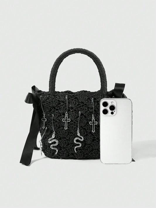 ROMWE Goth Bolso de mano de estilo gótico con diseño de cruz, serpiente y lazo, para Halloween