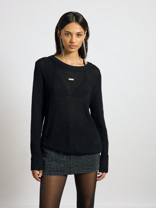 SHEIN EZwear Vestido de punto de hombros caídos de punto de malla sin sujetador