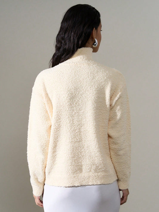 AiiRZ Cárdigan cuello alto de punto suave con acabado cepillado