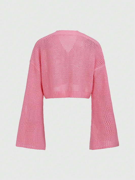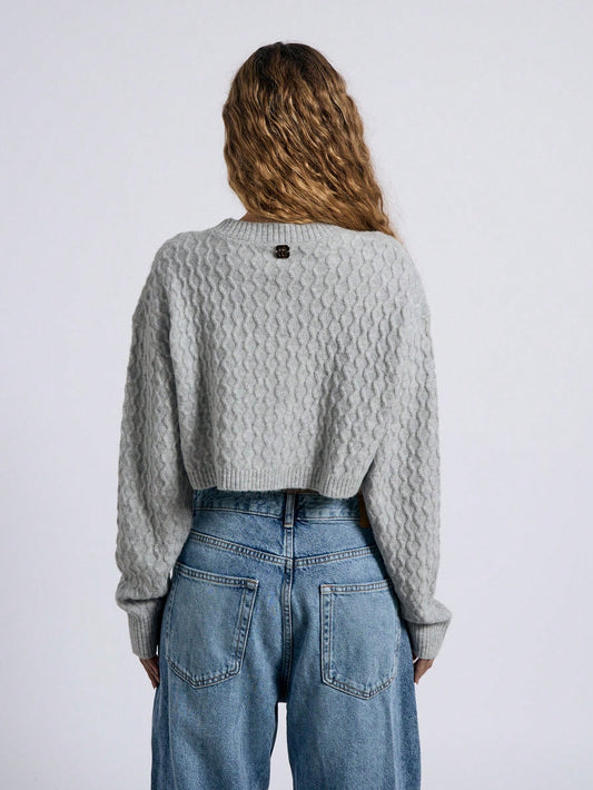 AiiRZ Cárdigan corto de mangas largas con punto de nervio y cable, diseño boxy