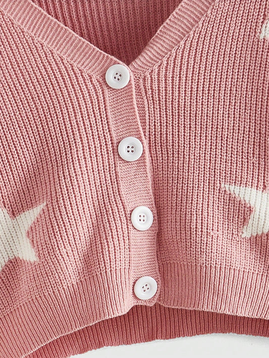 ROMWE Kawaii Cárdigan con bloque de color y estampado de estrellas, estilo casual para otoño