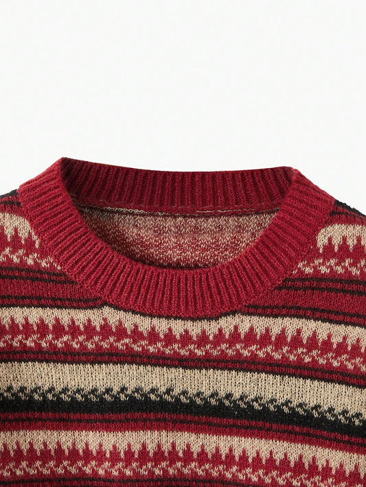 ROMWE Academia Suéter informal de manga larga con rayas rojas para celebrar el Año Nuevo