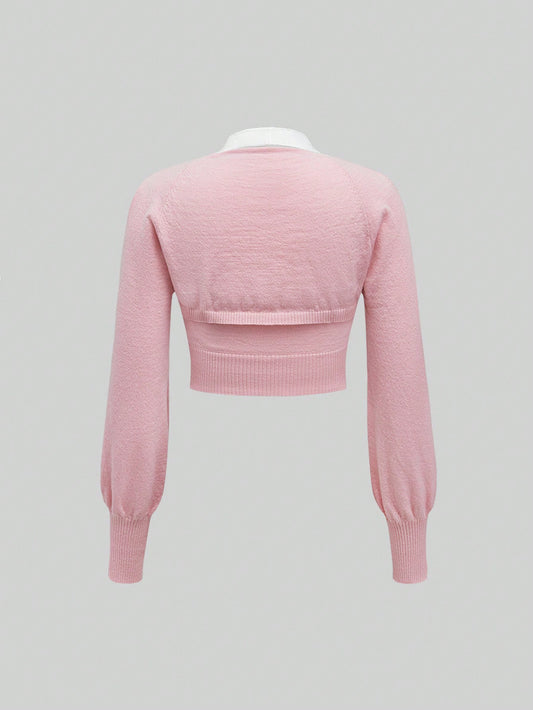 ROMWE Avant Suéter ajustado para mujer de manga larga con decoración de lazo, lindo y dulce