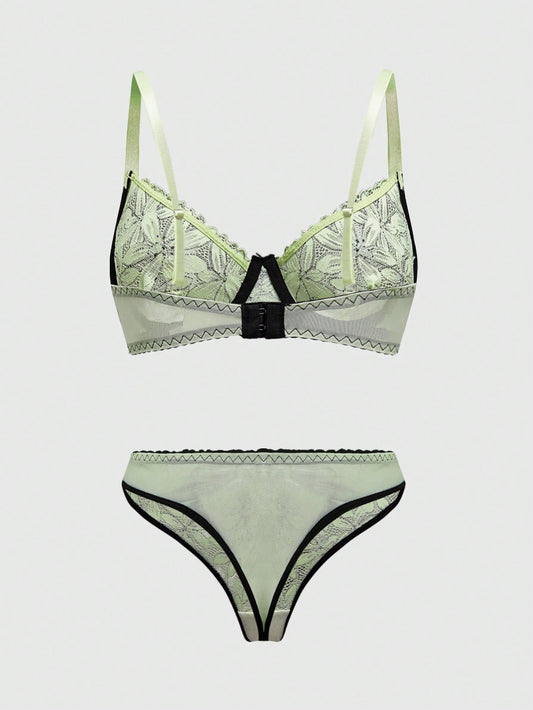 ROMWE Fairycore Conjunto de lencería sexy con taza de alambre con diseño floral de encaje tipo hada