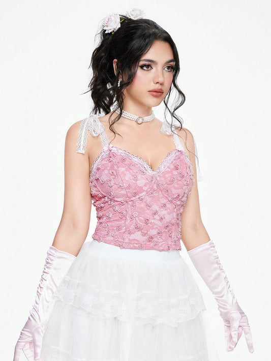ROMWE Fairycore Top de tanque vintage dulce y lindo para mujer con encaje de patrón de rosa