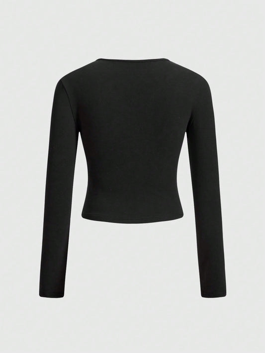 SHEIN Swim Mod Conjunto de bikini unicolor Camiseta de manga corta y traje de baño de 2 piezas con lazo lateral recortado