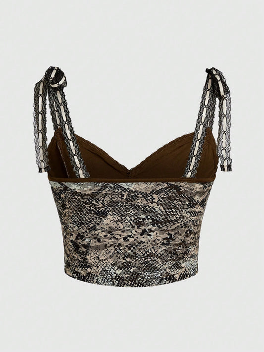 ROMWE Goth Top De Tirantes Con Encaje Y Estampado De Serpiente Con Lazo En El Hombro