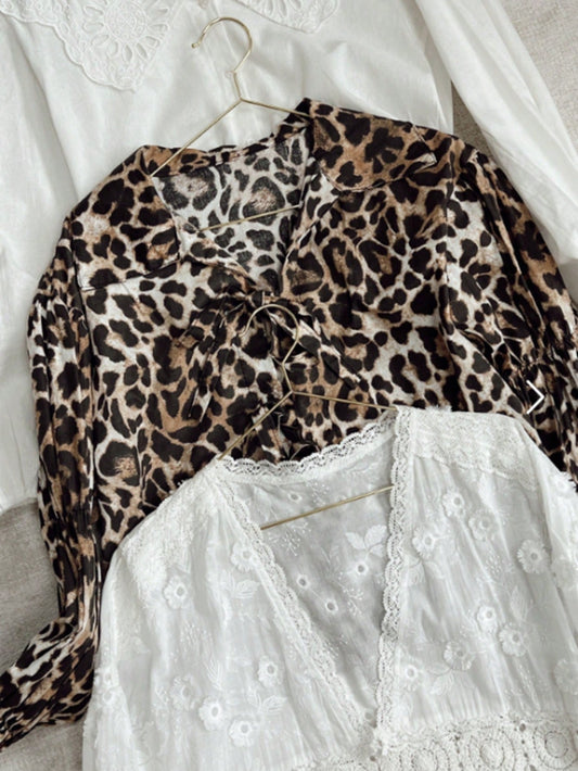 SHEIN Clasi Camisa casual con estampado de leopardo y mangas acampanadas para primavera/otoño