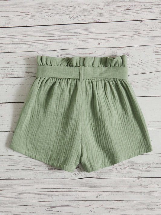 SHEIN Chicas Shorts con cinturón de cintura con volante