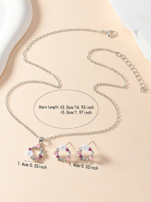 1 set: 1 pieza de aretes con flores + 1 pieza de collar - Conjunto de 3 piezas de aretes, colgante y collar de flores simples para mujer, adecuado para ocasiones casuales diarias y de citas