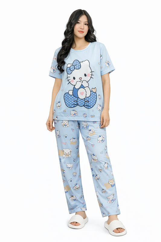 Set Pijama Cute Blue Bow – Polo + Short + Pantalón