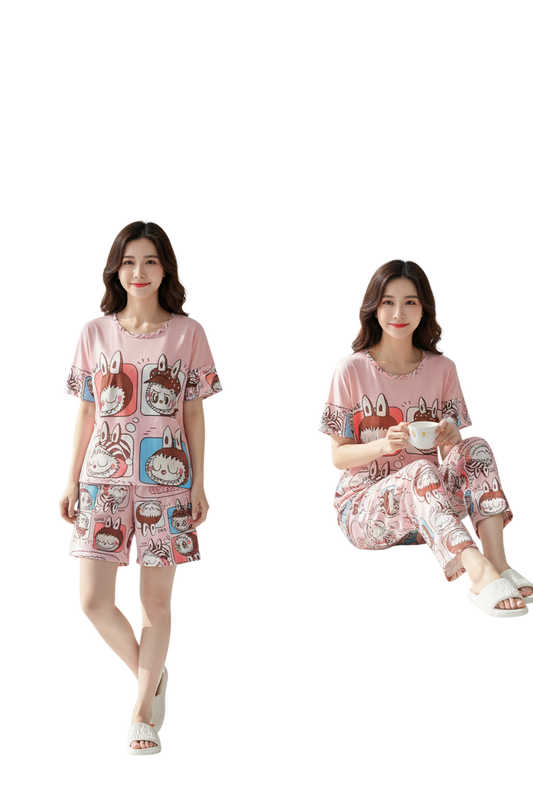 Set Pijama Bunny Pop Pink – Polo + Short + Pantalón
