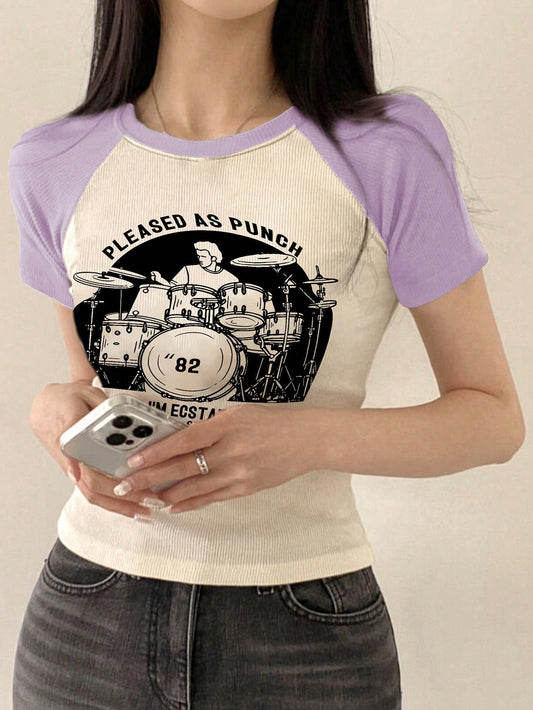 Betty Boop | ROMWE Camiseta corta de ajuste ceñido con de color, estampado de personaje de dibujos animados y letras, mangas raglán, para verano, camiseta de bebé para mujer, escuela