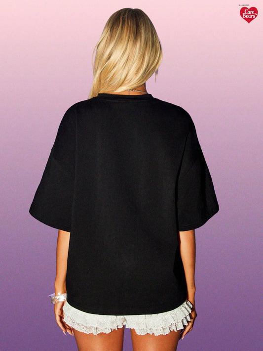 MISSGUIDED x Carebears Camiseta gráfica estética oversize con estilo vintage retro de rayo azul, trueno y oso, de mezcla de algodón, para uso casual y de calle