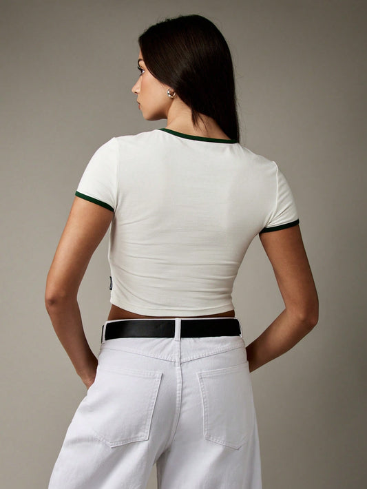 Missguided x Playboy Top corto de estilo vintage con borde a contraste, estilo universitario, nostálgico, de verano, casual, streetwear, básico, camiseta con estética