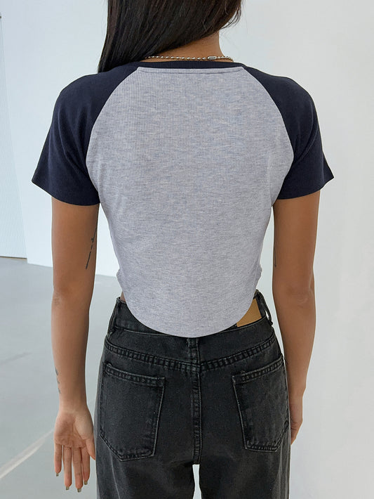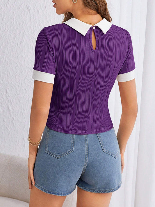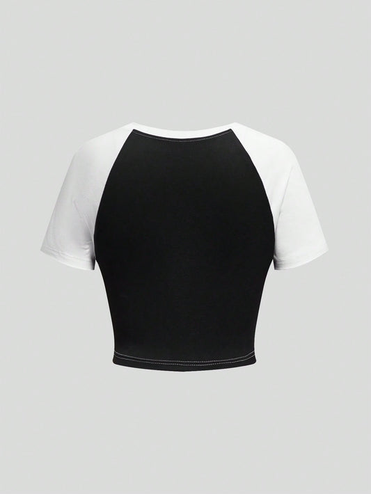 SHEIN Essnce Camiseta de mujer con mangas cortas y cuello de bloque de color contrastante