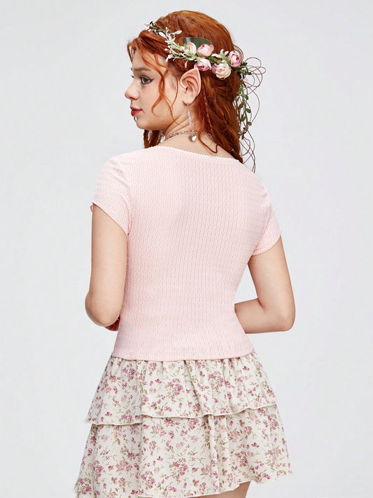 Sweetness Camiseta De Flores Vintage Para Mujer Ajustada