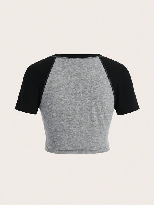 DAZY Camiseta con estampado de letra en contraste de manga raglán
