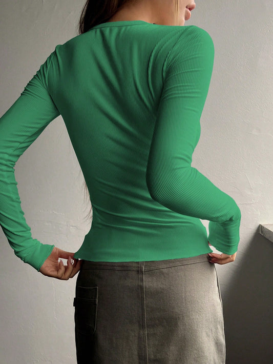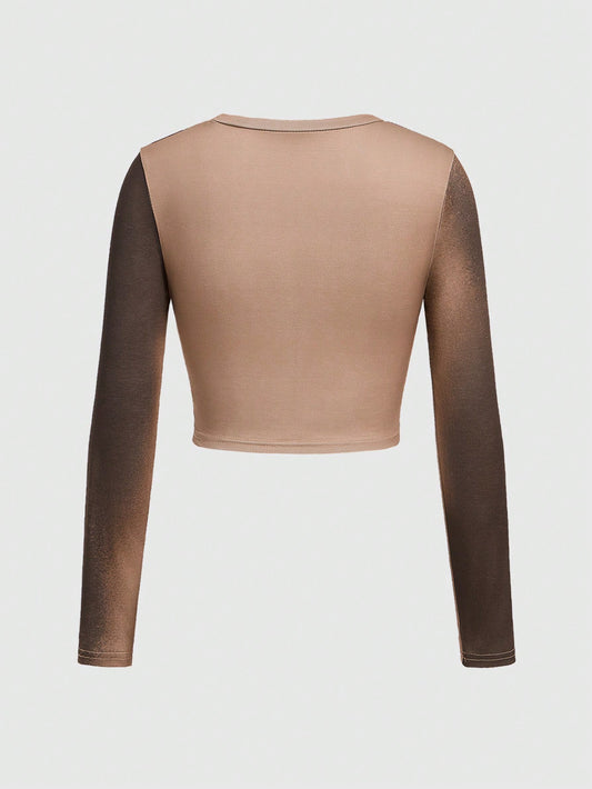 Dazy Designer Top De Manga Larga Con Corte Trasero