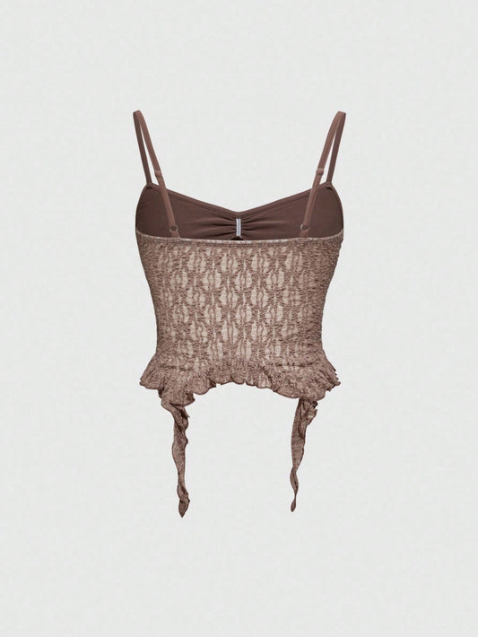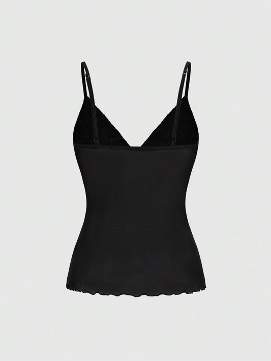 ROMWE Camiseta de tirantes ajustada con dobladillo asimétrico de encaje con textura desgastada y aspecto desaliñado