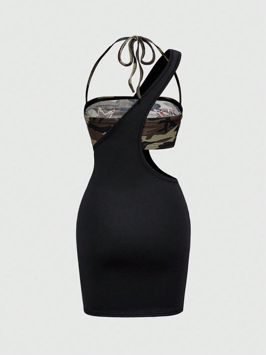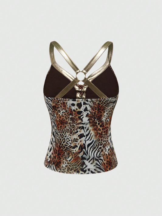 ROMWE J-Fashion Top halter de mujer con estampado de leopardo y contraste de colores en el estilo retro Y2K