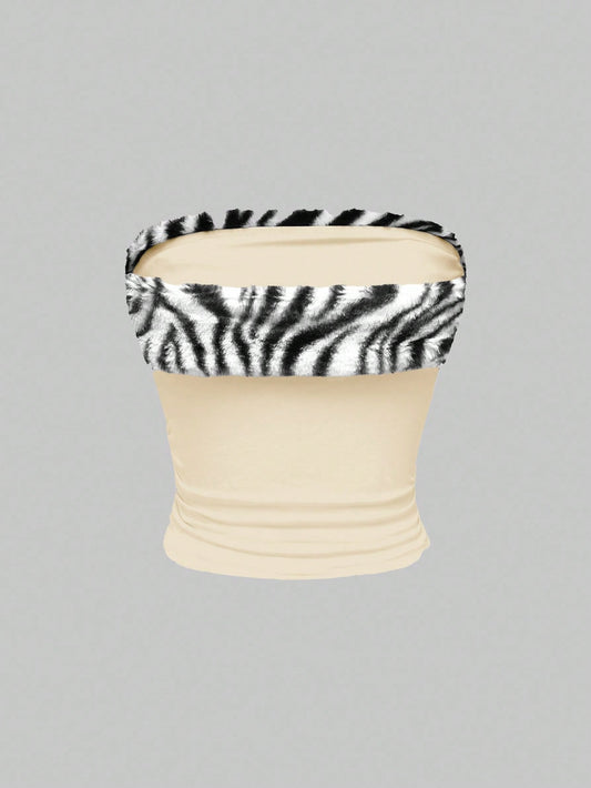 ROMWE J-Fashion Top corto ajustado de punto con estampado de cebra y parches, inspirado en la subcultura de Shibuya, para mujeres