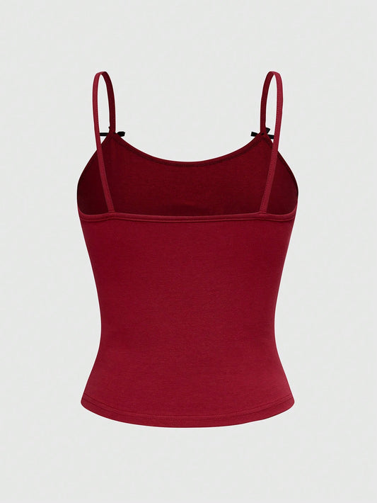 ROMWE Kawaii Top de tirantes para mujer con parches de encaje y alas de ángel, estilo kawaii y peculiar