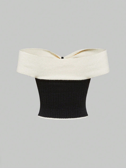 ROMWE Kawaii Top de punto con hombros descubiertos y diseño de mariposa para mujer